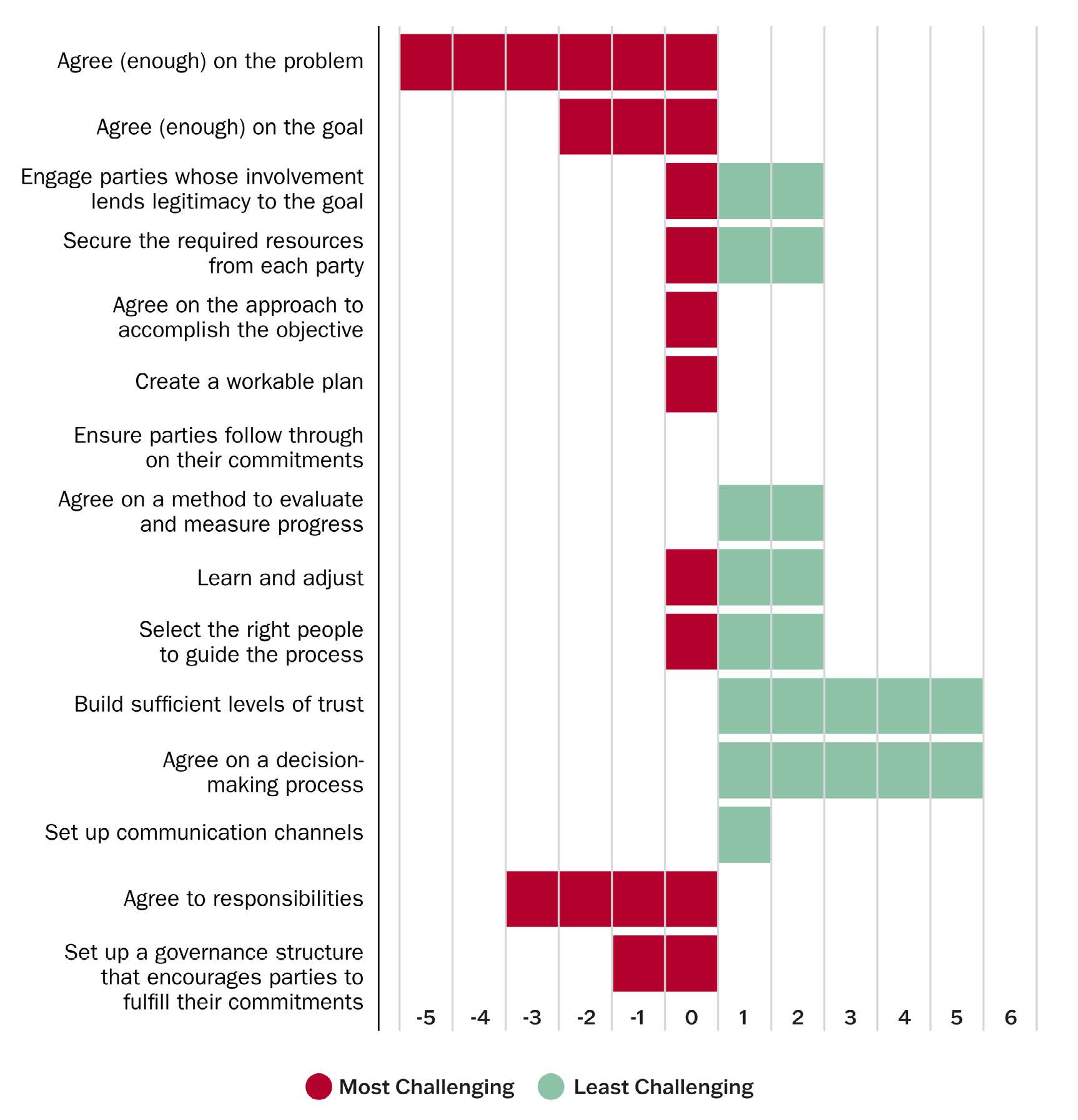 This tool outlines the tasks needed for a successful collaboration. The suggested sequence— steps 1 through 5—reflects a scenario where parties start with a blank slate and have control over the effort’s design.